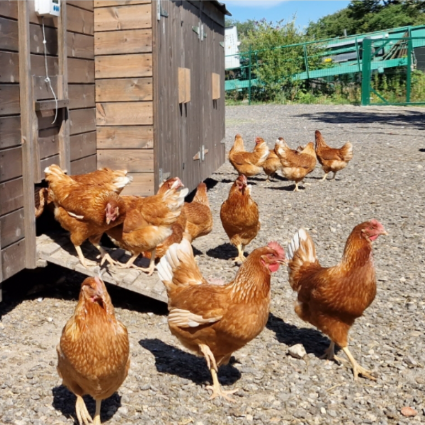 If you have been to any of our Easter events you will have met our very cute fluffy chicks! These are those chicks all grown up and laying eggs! Our free range girls enjoy plenty of space to roam around outside as well as the best food meaning they produce delicious eggs with rich yellow yolks. Our eggs are available to buy in the shop and you can even purchase a cup of chicken food whilst you’re there to feed to our chickens.